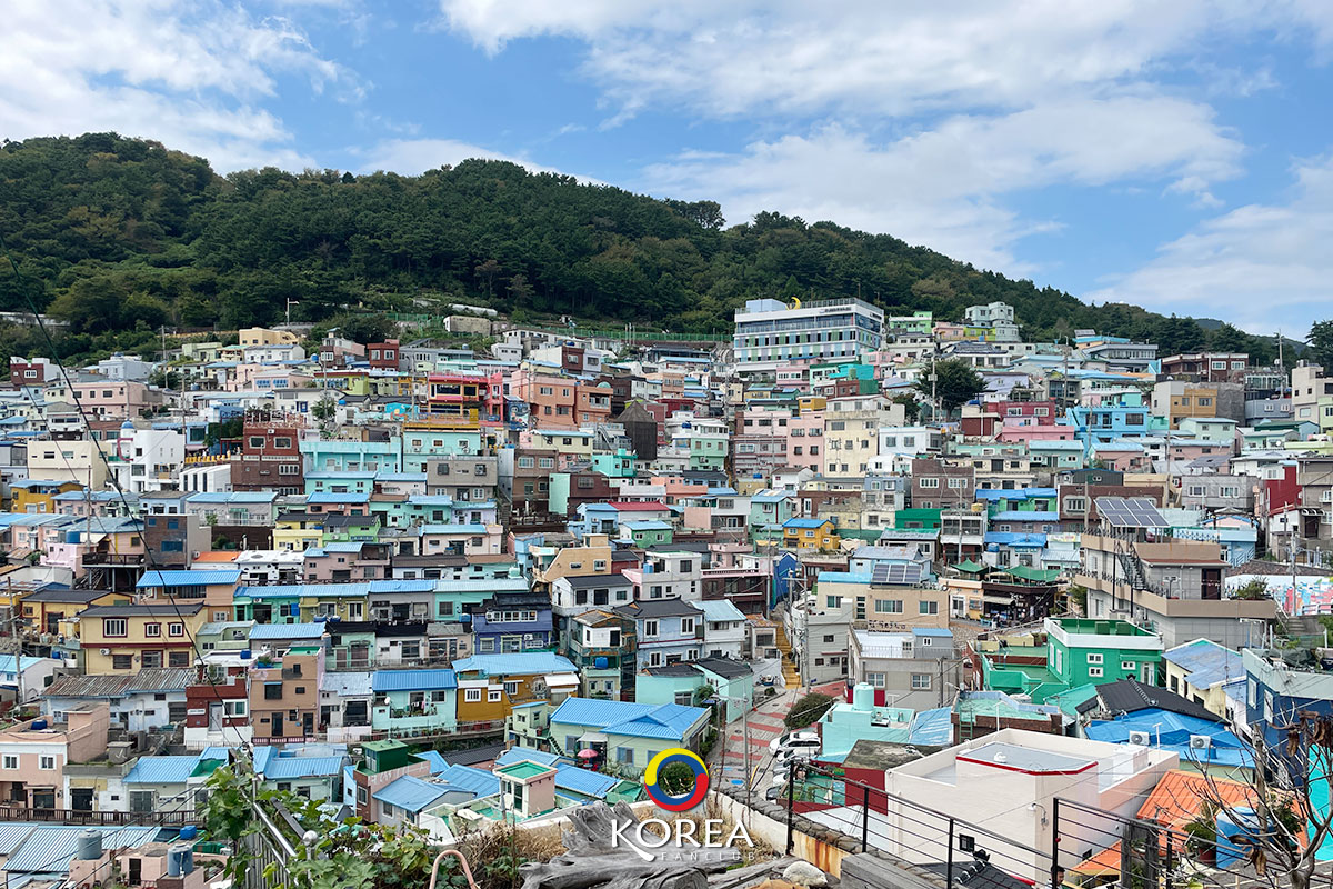 หมู่บ้านแห่งนี้ สร้างอยู่บนเนินเขา ( จะเรียกว่า หุบเขา ก็ได้ ) บ้านในบริเวณนี้ จะสร้างเรียงตัวกันตามแนวเขา มีถนนเล็กๆ วิ่งผ่าน บ้านแต่ละหลัง ทาสีสดใส – หลายคนเรียกว่า หมู่บ้านสีลูกกวาด – บางคนขนานนามให้เป็น มาชูปิกชูแห่งปูซาน (Machu Picchu of Busan)
