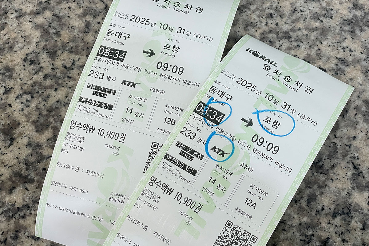 เรามาถึงสถานี Dongdaegu Station เพื่อขึ้นรถไฟ ไป โพฮัง – รถไฟเฉลี่ยออกทุกๆ 30 นาที ใช้เวลาเดินทางเพียง 35-40 นาที เท่านั้น