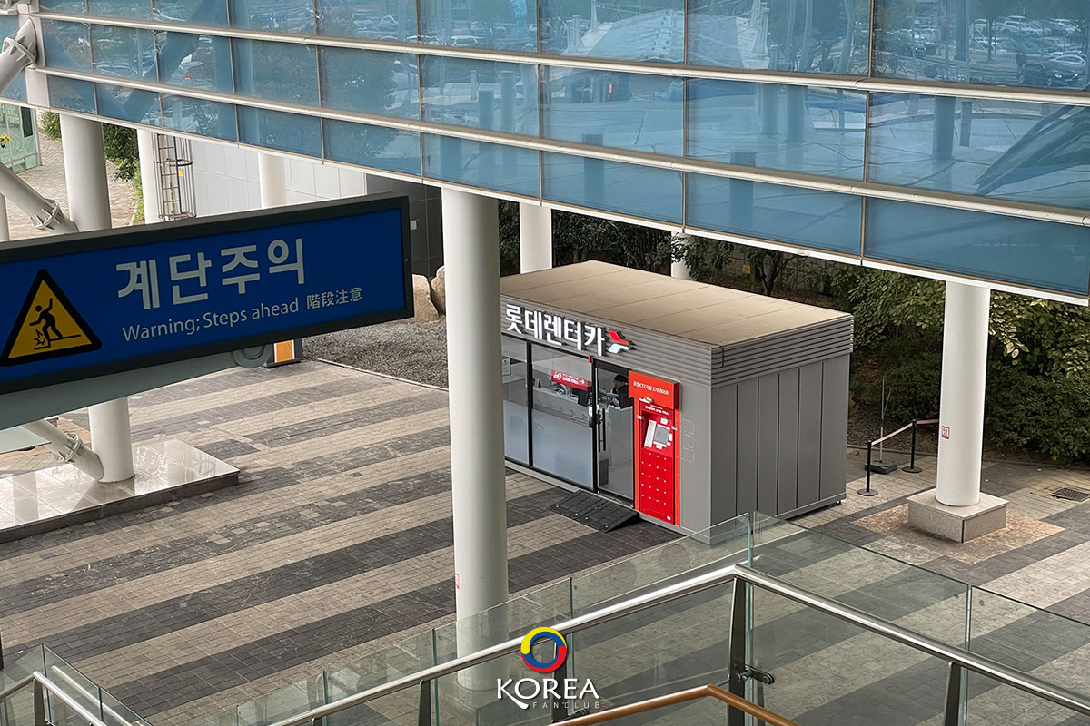 ทางออก เมื่อเดินลงมา จะเป็น Office Lotte Car Rental ตั้งอยู่แบบสั่งเกตุได้ง่ายๆ ใช้ทางออก Exit 1 เดินลงบันใดเลื่อนมาก็เจอเลย