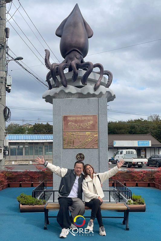 อนุสาวรีย์ปลาหมึก แห่งตลาดกงจิน : อยู่ใจกลางตลาด เป็นพื้นที่จอดรถ และอยู่ติดคาเฟ่ของคุณโอยุน