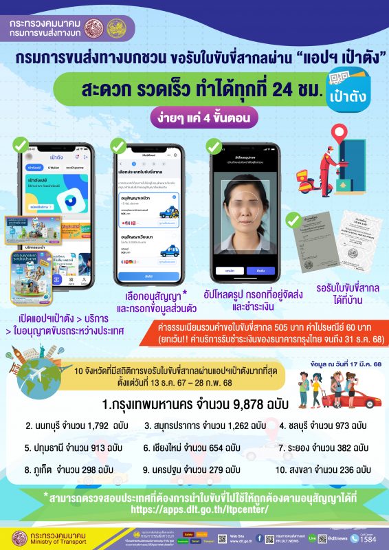ทำ ใบขับขี่สากล (อนุสัญญาเจนีวา 1949) ผ่าน App เป๋าตังค์สะดวกที่สุด