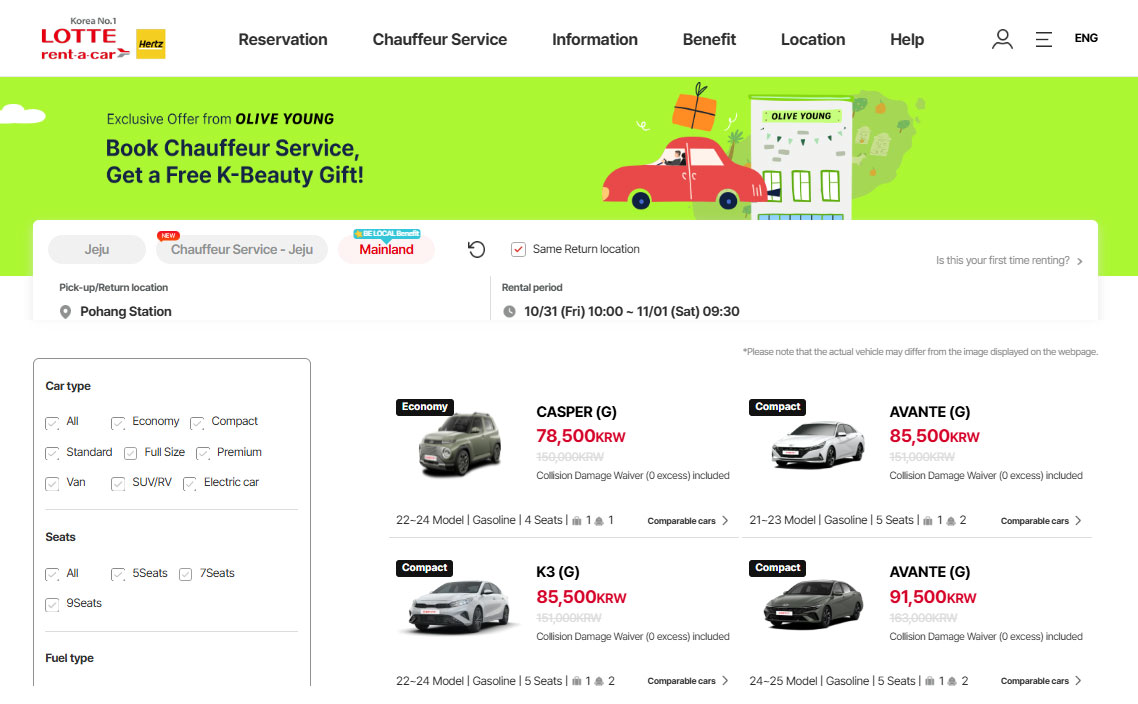 ทริปนี้ลุงเด้งป้าไก่ เลือกเช่ารถของ Lotte Rent a Car คลิก https://www.lotterentacar.net/hp/eng/reservation/index.do?LANG=eng
