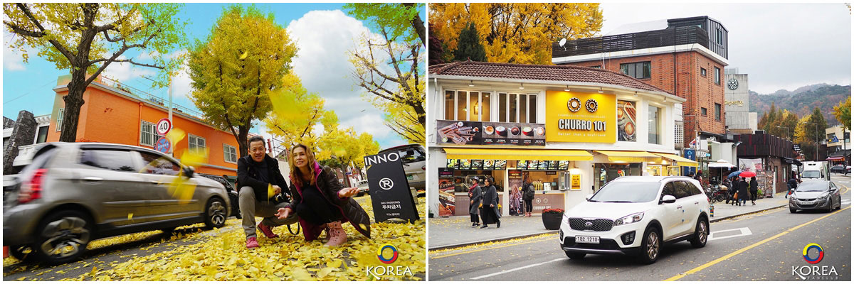 ถนนซัมชองดอง “Road Mixing old & Modern Korea Culture” เป็นถนนที่หนุ่มสาวเกาหลีมาเดินช้อป เดินชม ความสวยงามของ ต้นแปะก๊วย ของ 2 ฝั่งถนน ในช่วงใบไม้เปลี่ยนสี ปลายตุลาคม – กลางพฤศจิกายน