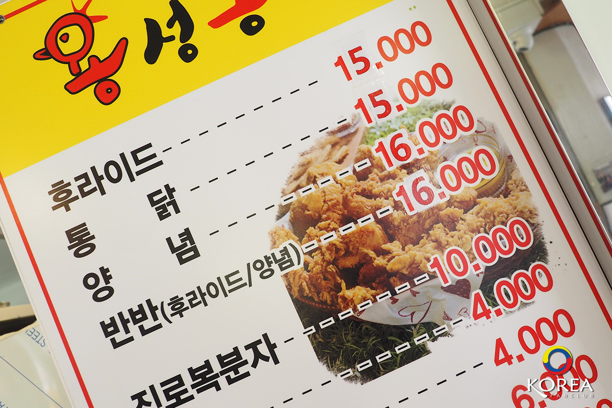 ร้านไก่ทอดในย่านนี้ จะขายอยู่ 2 แบบ คือ ไก่ทอดเกาหลีแบบดั้งเดิม และ ไก่ทอดซอสพริก ( เกือบทุกร้าน จะขายกันแบบนี้ครับ )