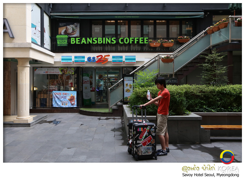 ผ่านทางเข้าของโรงแรม จะมีร้านสะดวกซื้อ GS25 (เหมือนกับ 7 eleven) และ ร้านกาแฟ Beansbind Coffee