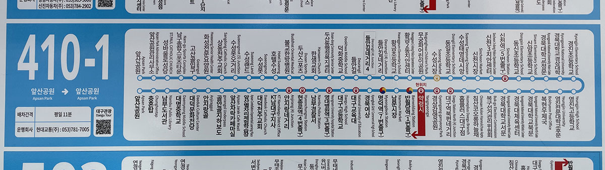 การเดินทาง : ขาไป -> รถเมล์ 410-1 ลงสถานี Apsan Park (สุดสาย)