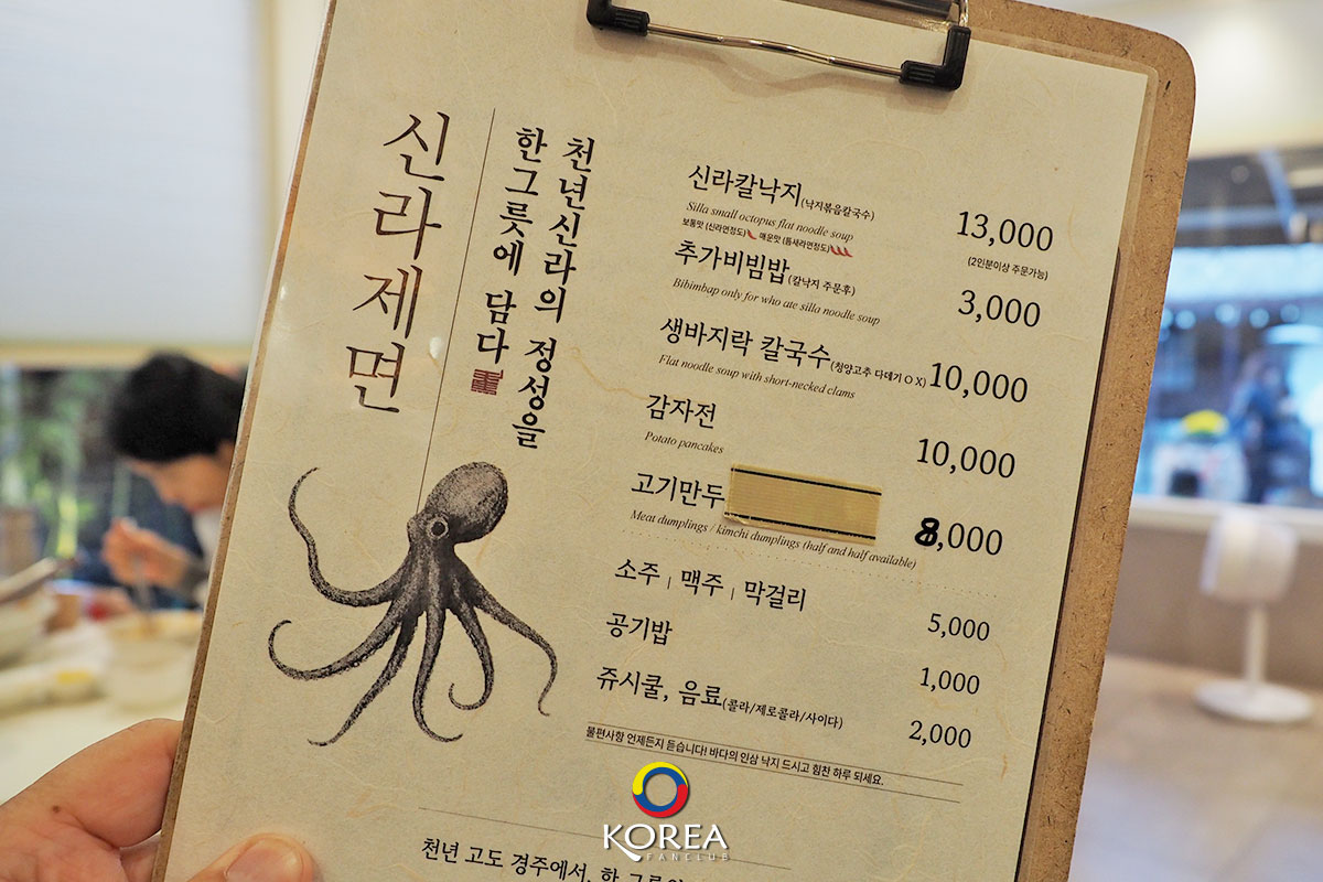 Silla Small Octopus Flat Noodle Soup คนละ 13,000 วอน (สั่งขั้นต่ำขนาด 2 คน ขึ้นไป)