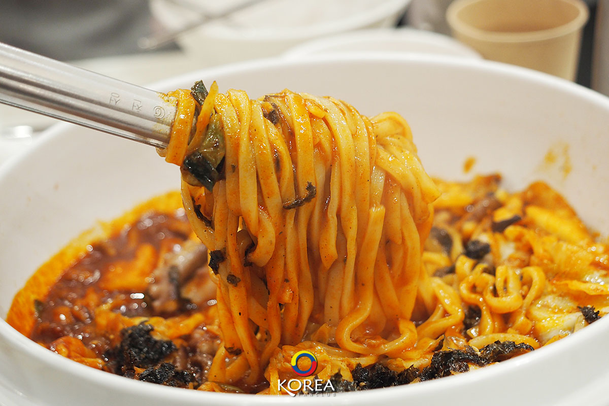 Shilla-Je-Miyeon ร้านอาหารชื่อดังในย่าน ฮวังนิดัน-กิล (Hwangnidan-gil) โด่งดังสุดๆ จากเมนู “ชิลลา คาล-นัก-จี” (신라 칼낙지) บะหมี่เส้นเหนียวนุ่มซอสปลาหมึกรสเผ็ดจัดจ้าน